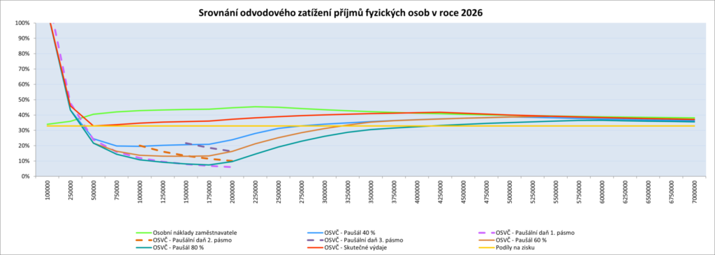 Srovnání zdanění různých druhů příjmů DPFO v roce 2026